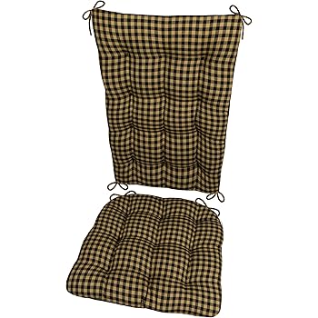 Checkers black and tan checkered rocking chair cushions by barnett products are made in a traditional checked pattern with quarter inch checks.