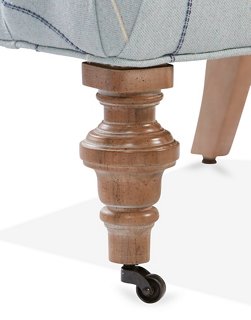 Our tropical tea chair is a high back upholstered accent chair with a rounded base, deep feather filled seat and tapered legs.