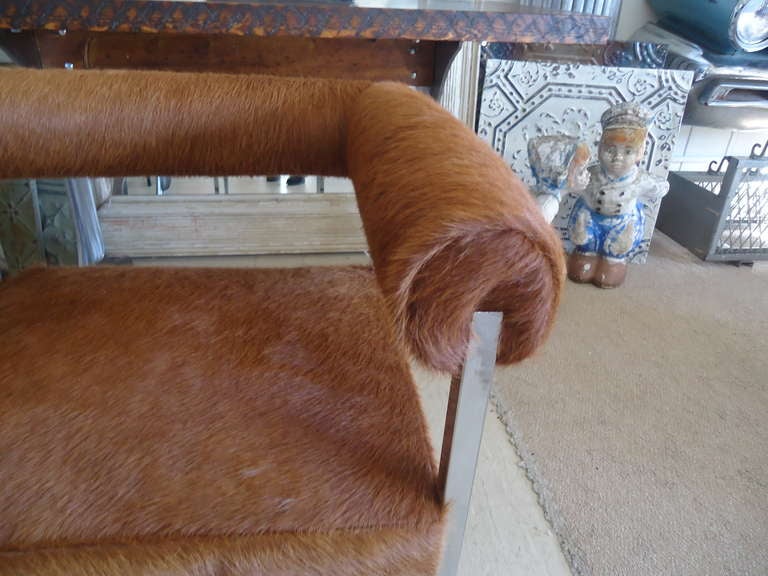 Floating back seat cushion and seat have been newly reupholstered in burnt orange textured fabric.