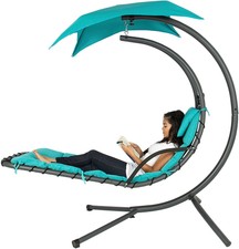 Outdoor Hanging Curved Chaise Lounge Chair Swing. Hanging chaise loungers combines the comfort of a lounge chair and the hanging sensation of a hammock. With a recliner chair, you can easily adjust the backrest to accommodate your needs.