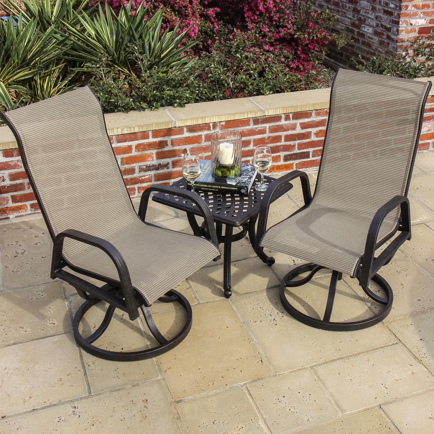 Patio Bistro Set Swivel Chairs. Dining sets patio lounge sets patio sectional sofas patio small space chat sets picnic table sets rocking chairs stacking chairs swivel chairs aluminum faux wood magnesium oxide metal plastic rattan sling steel wicker wood wood composite wrought iron 1 2 3 4 5 6 7 8 9 10 11. Shop wayfair for all the best swivel chairs patio dining sets.