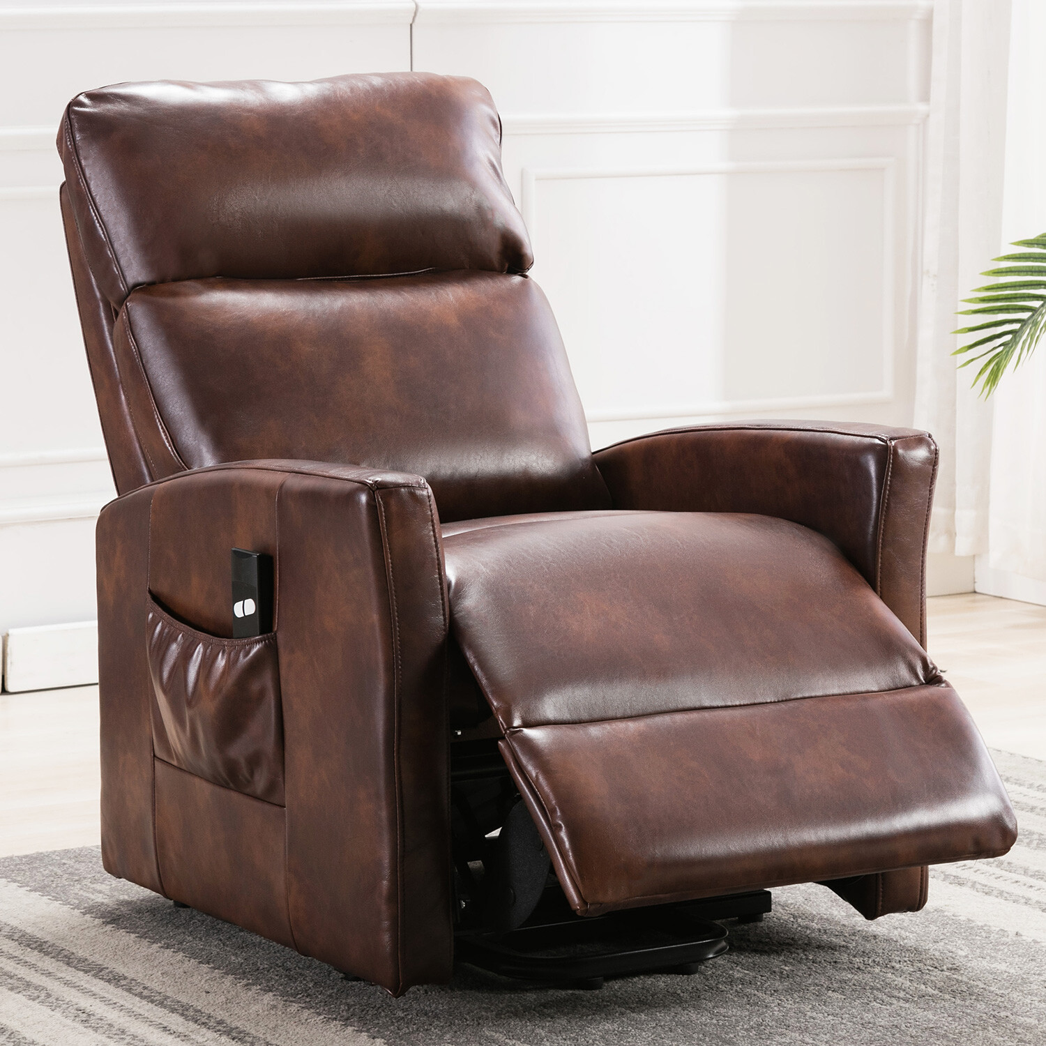 This comfort electric leather lift chair is great for watching tv, reading power lift function could push the entire chair up from its base to help the senior to stand up easily.
