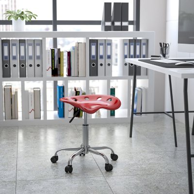 Why get a standing desk chair or stool? View product image 5 of 5, for flash furniture polymer vibrant computer task chairs with tractor seat (lf214chytomato). Why get a standing desk chair or stool? Raise and lower your swivel desk chair to your desired height while working on a laptop, answering the phone or handling other work responsibilities.