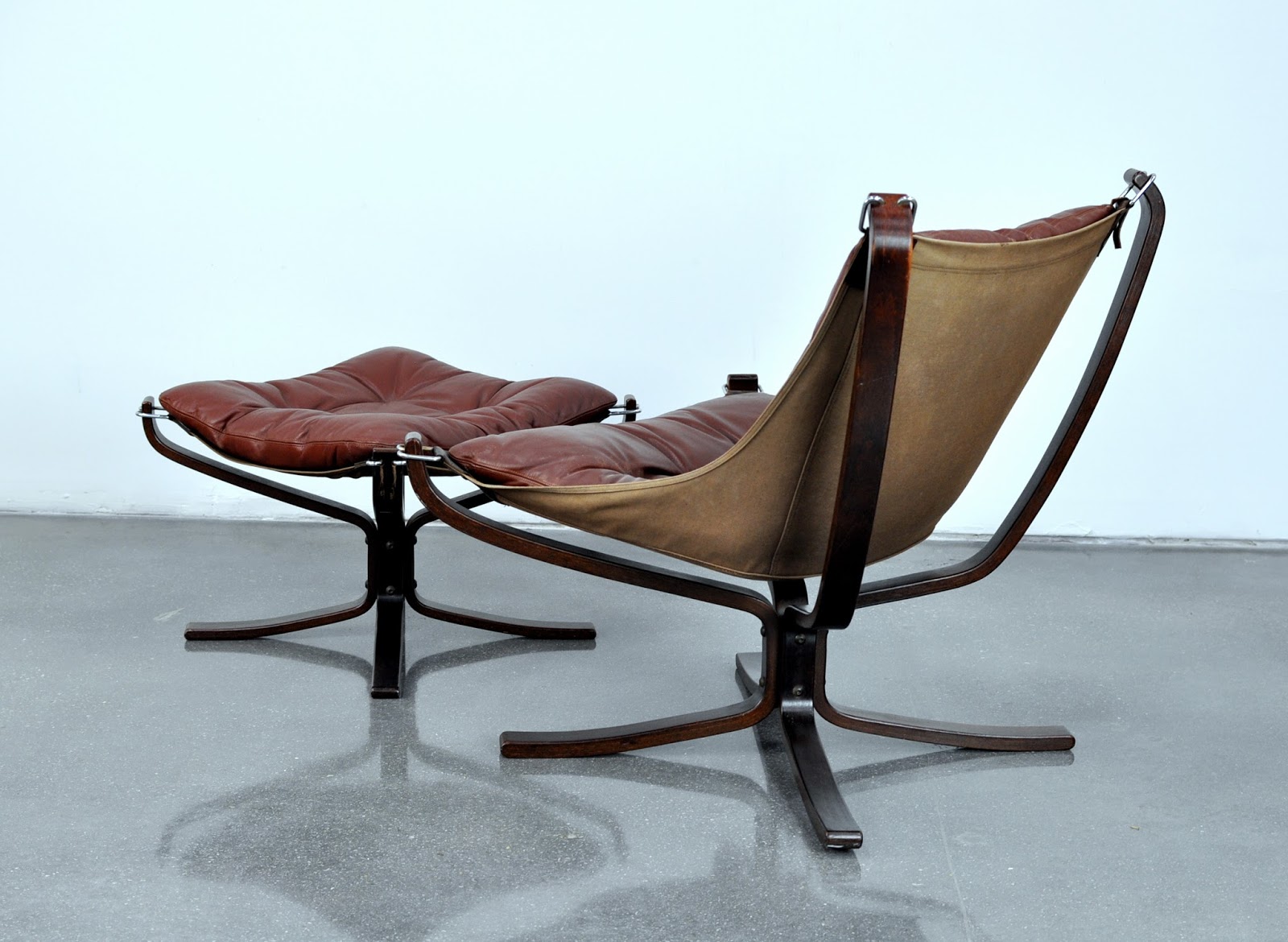 Vatne Mobler Falcon Chair. Black leather falcon chair by sigurd russel for vatne mobler, 1970s. Leather high back falcon chair and ottoman made by vatne mobler sigurd ressell norway rosewood stained bentwood base.