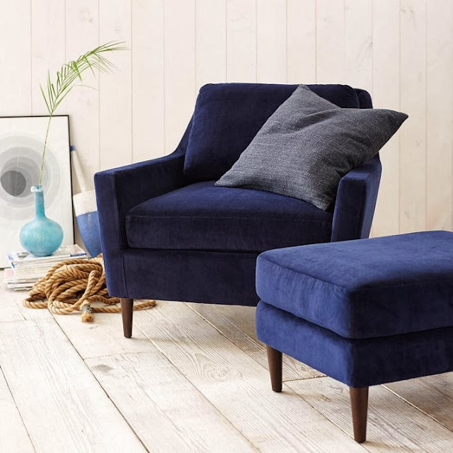 West Elm Velvet Accent Chair and Ottoman - AptDeco from d6qwfb5pdou4u.cloudfront.net